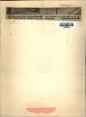 A workman carried repair materials at Wausau's Grand Theater, which is undergoing a $1.7 million conversion to an area center for the performing arts.