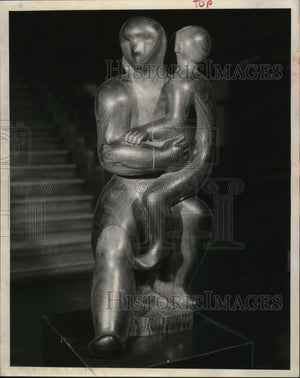 1956 Press Photo Mother and Son carving by Humbert Albrizio , U of Wisconsin