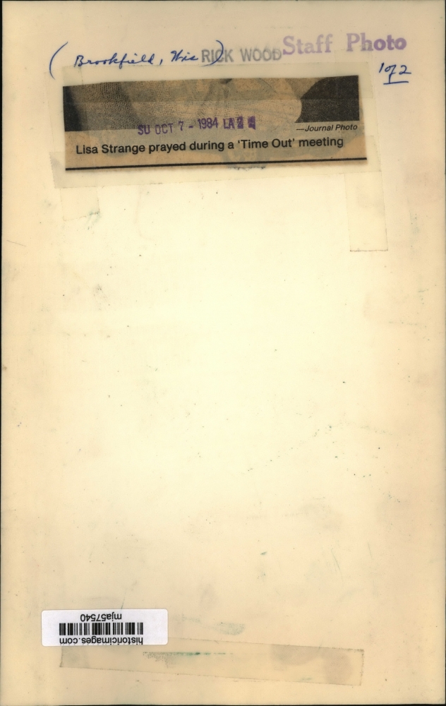 1984 Press Photo Lisa Strange Prays During Meeting - mja57540