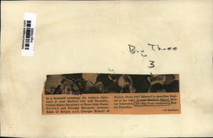 In a farewell ceremony for western diplomats at west Berlin's city hall Thursday, United States Secretary of State John Foster Dulles and Foreign Ministers Anthony Eden of Britain and Georges Bidault of France (from Left) listened to speeches. Seated at far right is west Berlin's Mayor Walter Schreiber. The Big Four Conference ended Thursday.