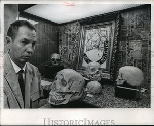 A new museum exhibit highlights 100 years of dentistry. The museum display features examples of dental pathology of prehistoric Wisconsin Indians. A skull held by Robert Lietz, an assistant curator, is part of the exhibit. (Milwaukee - Museum - Exhibits - Miscellaneous)