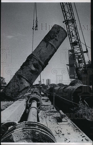 1965 Press Photo Old 50 inch sewer pipe pulled from the Milwaukee river