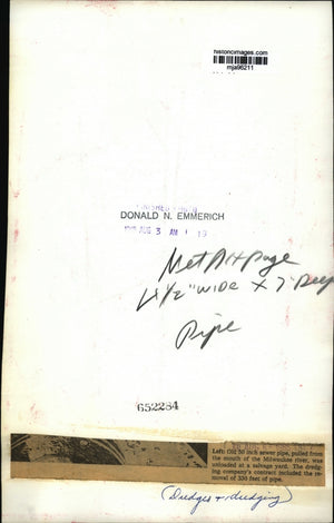 Old 50 inch sewer pipe, puled from the mouth of the Milwaukee river, was unloaded at a salvage yard. The dredging company's contract included the removal of 330 feet of pipe. Dredges, dredging.