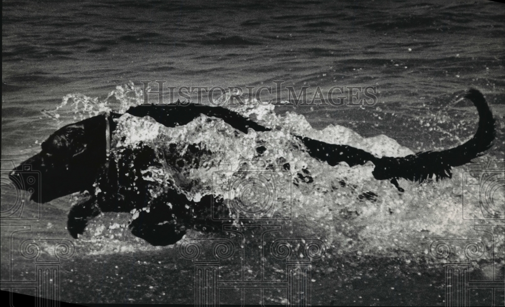 1988 Press Photo Muhammad Ali, a 7-year-old Labrador Retriever, fetches a stick