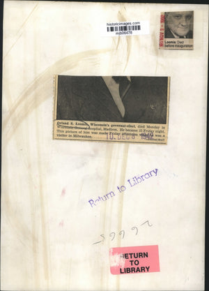 Orland S. Loomis, Wisconsin's governor-elect, died Monday in Wisconsin General Hospital, Madison. He became ill Friday night. This picture of him was made Friday afternoon when he was a visitor in Milwaukee. Died before inauguration.