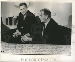 U.S. Senator Thomas McIntyre, D-N.H. (r), talks with Alabama Attorney General Richmond Flowers at Flowers' office here today. Following the meeting, McIntyre, who is making his own tour of the state to see civil rights conditions for himself, said, "I am convinced after talking to Mr. Flowers that there has not been a breakdown in law and order in Alabama."