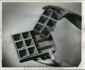 1959 Press Photo Small plastic pots, 12 to a sheet, will hold many transplants