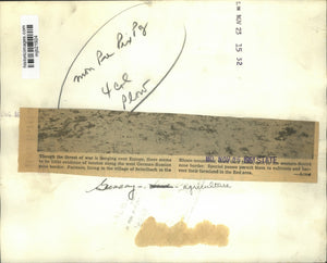 Though the threat of war is hanging over Europe, there seems to be little evidence of tension along the west German-Russian zone border. Farmers, living in the village of Setzelbach in the Rhoen mountians, work their fields, split by the wester-Soviet zone border. Special passes permit them to cultivate and harvest their farmland in the Red area. (Germany - Agriculture)