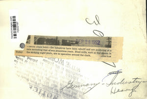 Today - seven years later - the industries have been rebuilt and are producing at a rate exceeding that of any peacetime years. Steel mills, such as that shown in the striking night photo, are in operation around the clock. (Germany - Industry - Heany)