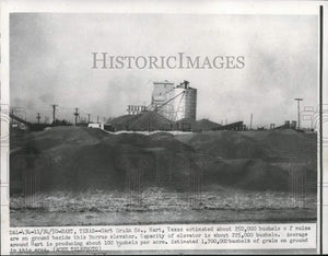 1950 Press Photo Grain elevators, piles of maize Hart Grain Company, Hart, Texas