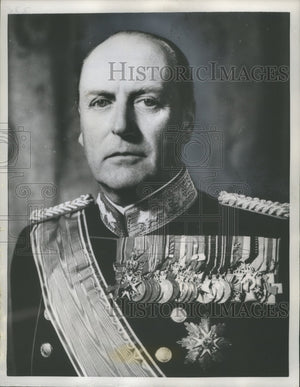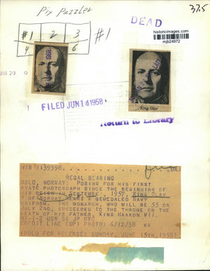 Regal bearing - Oslo, Norway: Posing for his first state photograph since the beginning of his reign in September, 1957, King Olav of Norway wears a bemedaled Navy uniform. The Monarch, who will be 55 on July 2nd, succeeded to the throne on the death of this father, King Haakon VII
