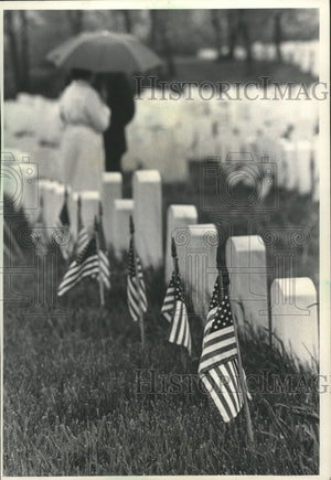 1965 Press Photo Graves decorated with flags at Wood National Cemetery