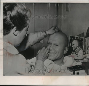 A beautician and coloring artist for Madame Tussaud's waxworks in London touched up a waxen head of astronaut John H. Glenn for an exhibit. Miss Vera Bland, the artist, used a photograph as a guide. Glenn.