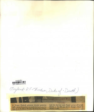 A Windsor (England) policeman directed pedestrian traffic during the weekend as crowds lined up to pay last respects to the duke of Windsor, the former king of England who died last week. Funeral services will be held Monday in the 500 year old Saint George's Chapel at Windsor Castle. England - Royal Family - Windsor, Duke of - Death.