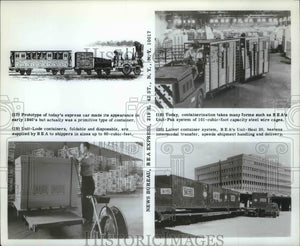 Prototype of today's express car made its appearance in early 1840's but actually was a primitive type of container. Today, containerization takes many forms such as R E A's Unit-Pak system of 101-cubic-foot capacity steel wire cages. Unit-Lode containers, foldable and disposable, are supplied to R E A to shippers in sizes up to 60-cubic-feet. Latest container system, R E A's Unit-Haul 20, hastens intermodal transfer, speeds shipment handling and delivery. - News Bureau, R E A Express, 219 E. 42 ST., New York, New York 10017