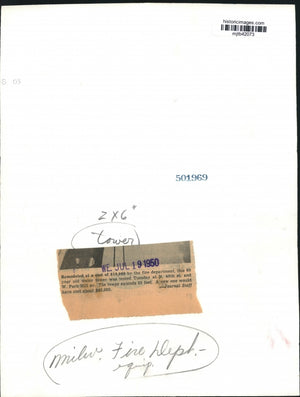 Remodeled at a cost of $10,000 by the fire department, this 60 year old water tower was tested out Tuesday at North 45th street, and West Park Hill Avenue. The tower extends 55 feet. A new one would have cost about $40,000. Milwaukee fire department - equipment
