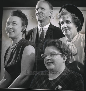 On straight "party" lines, the vice-president of the Industrial Passenger Agents of Wisconsin would be outvoted 3 to 1 every time officers of the association meet. (W. H. Quirmbach, Schwerman Trucking Co., Milwaukee, is the lone male elected by a membership of nearly equally divided among men and women. With him are left to right: Mrs. Doris Pautz, Parker Pen Co., Janesville, secretary; Miss Dolores Lippert, Kimberly Clark Corp., Neenah, president, and Miss Betty Thommen, Northwestern Mutual Life Insurance Co, Milwaukee, treasurer.