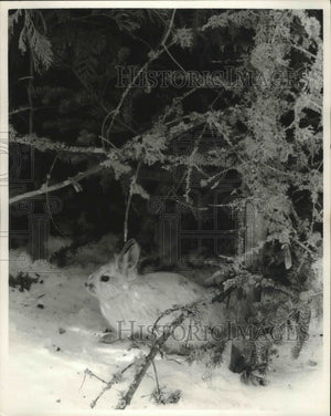 1985 Press Photo snowshoe hare blends in with the Wisconsin snow - mjb42539