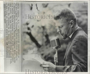 Ithaca, New York -- Reclassified Clergyman -- The Rev. Paul E. Gibbons, United Ministry chaplain at Cornell University's United Religious Work, talks at a rally before turning in his draft card earlier this year. He has been reclassified from 4-D to 1-A.The Rev. Mr. Gibbons is 34 years old and married. He has been at Cornell since 1962