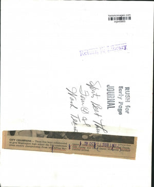 City champions - These five boys collaborated to give Washington high school the City conference cross country championship. From left; Jeffrey Martinson, Calvin Dallas, David Schulz, Michael Thiede, John Feeley and Coach Daniel McKinney, Marshall finished second.