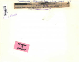 Freshman Darlene Bender had her back strength and flexibility checked. Milwaukee High School of the Arts.