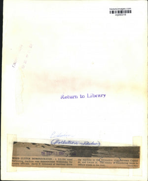 Weed Cutter Demonstrated- a $35,000 weed harvesting machine was demonstrated Wednesday for county officials. Harry F. Grinwald of Hartland drove the machine in the Milwaukee river between Capitol Dr. and Locust St. The county is considering ways to reduce weeds in the river.
