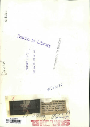 At left, another family member David Robb, 22, spoke to his new sister-in-law, Mrs. Charles Robb as he passed though the reception. Milwaukee- Marriage. Milwaukee, Wisconsin.