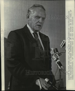 1972 Press Photo Gus Hall, Communist Party candidate, at press conference