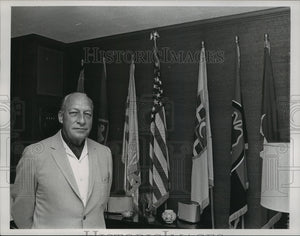 1968 Press Photo Former General Paul D. Harkins by flags he served under.
