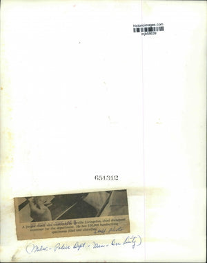 A forged check was examined by Orville Livingston, chief document examiner for the department. He has 120,000 handwriting specimens filed and classified. (Milwaukee - Police Department - Men on Duty). Wisconsin.