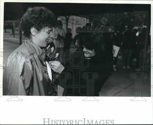 1994 Press Photo Sue Waldoch Pins a Corsage on Principal Mary Hauke - mjb61890