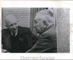 Gettysburg, Pennsylvania - Top Republicans Confer - Former president Dwight D. Eisenhower met this morning with House GOP leader Charles A. Halleck of Indiana (right) to discuss "every thing" about the Republican party. The meeting was in Eisenhower's private office at Gettysburg College.