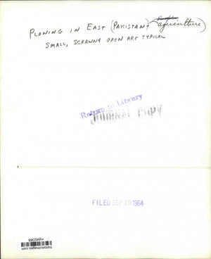 Plowing in East Pakistan. Small, scrawny oxen are typical. Agriculture.