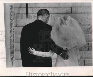 President Johnson and his daughter, Luci, arms around each other, walk up the steps to the Shrine of the Immaculate Conception in Washington today. Patrick Nugent, Luci Johnson, Wedding.