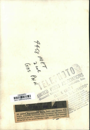 1956 Press Photo Harris and Fulbright congratulate a passed natural gas bill.