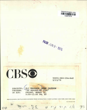 Columbia Broadcasting System (CBS) Subjects: Eli Wallach, Anne Jackson. Program: "20 Shades of Pink" On Air: Friday, March 12.