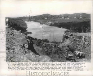 1955 Press Photo Dynamited rock is cleared away from Panama Canal Hill