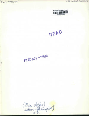 1970 Press Photo Eric Hoffer, author and philosopher, U.S. - mjb72089