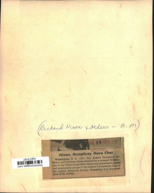 Sen. Hubert Humphrey (D-Minn.) and President Nixon chatted for a moment Wednesday at the White House after Nixon was presented a medal and membership plaque in the Capitol Cornerstone Club of the Capitol Historical Society. Humphrey is a vice president of the society. Richard Nixon & Others