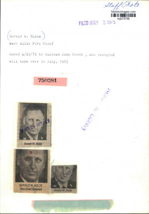 Gerald W. Nolte, West Allis Fire Chief, named 4/29/75 to succeed John Morch, who resigned. Nolte will take over in July, 1975.