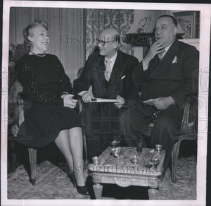 In Rome for a rest, Finland's Premier Urho Kekkonen (center) chatted with his minister to Italy, Harri Holma, and the minister's wife. Kekkonen is one of the signers of the Finnish-Russian friendship pact. His doctor advised the rest.