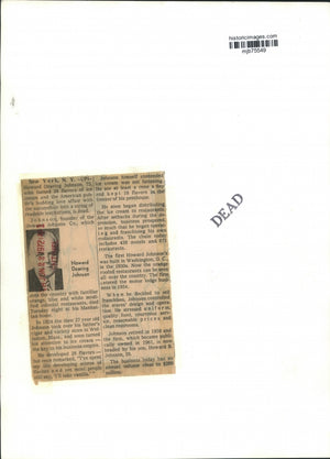 Dies- Howard D. Johnson, founder of the restaurant chain that bears his name throughout the nation, died Tuesday in New York. He was 75.