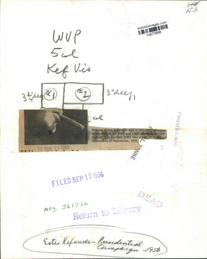Senator Estes Kefauver was a frequent visitor to Wisconsin in the 1952 and 1956 presidential campaigns. The portrait (left) was made on a train to Milwaukee in September, 1956. Estes Kefauver - Presidential Campaign 1956. Kefauver visit.