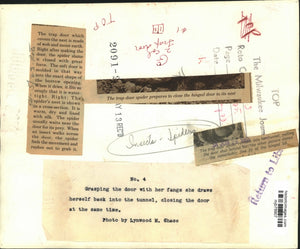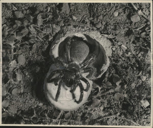 1965 Press Photo Trap door spider prepares to close the door to its nest