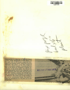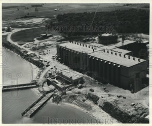 Construction is continuing on the Point Beach nuclear power plant north of Two Rivers. At the upper left is the already completed information and training center, which was recently dedicated. The center is the first completed part of the power complex. The tallest part of the building is the reactor containment vessel. The water intakes and pump house for the plant are in the foreground.