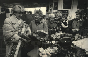 Neighbors Mary Ann Gransee (left) and Millie Sevedge (second from left) of Wauwatosa are among a group of shoppers looking at cards and wrapping paper in the Mayfair Mall Shopping Center. Shoppers.
