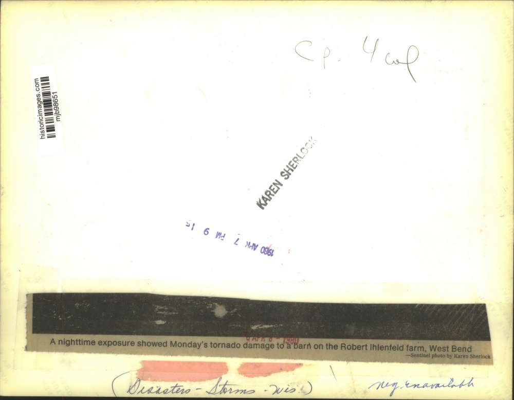 1980 Press Photo Tornado damage to barn on Robert Ihlenfeld farm, West Bend