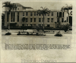 This is the United States' Embassy in Panama which President Johnson ordered evacuated today. He also ordered that secret documents and codes in the building be destroyed. These orders were carried out as new gunfighting burst out between U.S. troops and Panamanians on the border of the U.S. Canal Zone.