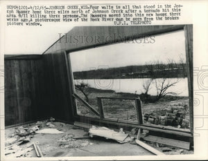 Johnson Creek, Wisconsin - Four walls is all that stood in the Joseph Hauser home three miles north of Johnson Creek after a tornado hit this area April 11 killing three persons. The Hausers moved into this new house three weeks ago. A picturesque view of the Rock River can be seen from the broken picture window. Disasters - Storms - Wisconsin.