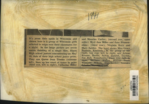 It's prom time again in Wisconsin and shown here is a group of Wisconsin girls selected to reign over their classmates for a night. In the large picture are seven maids thinking of a single date, Ripon High school juniors concentrating on May 16, date of their high school junior prom. They are Queen Jean Temme (extreme left), lines up her court of honor in pairs (first row, left to right), Catherine Miller and Maurine Carter: (second row, same order) Myrl Ann Miller and Jane Blumenshine: (third row), Virginia Rock and Mary Sattler.